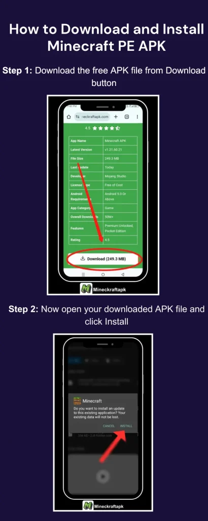 Follow these easy steps to download and install Minecraft Pocket Edition APK on your Android device: