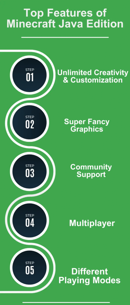 Minecraft Java Edition offers amazing and flexible features for every gaming fan. Here are some of its top features: